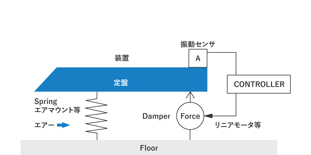 アクティブ除振システムとは、半導体製造などに代表される精密な加工や検査、分析などの工程で求められる、人が感じない僅かな振動への対策に適したシステムです。