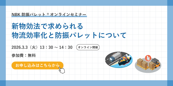 【セミナー】第6回 NBK防振パレット®オンラインセミナーのご案内(新物効法で求められる物流効率化と防振パレットについて)を開催します