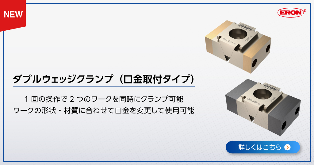 このたび、1回の操作で2つのワークを同時にクランプ可能な「ダブルウェッジクランプ」の口金の取付・変更が可能なタイプを新しく販売開始しました!