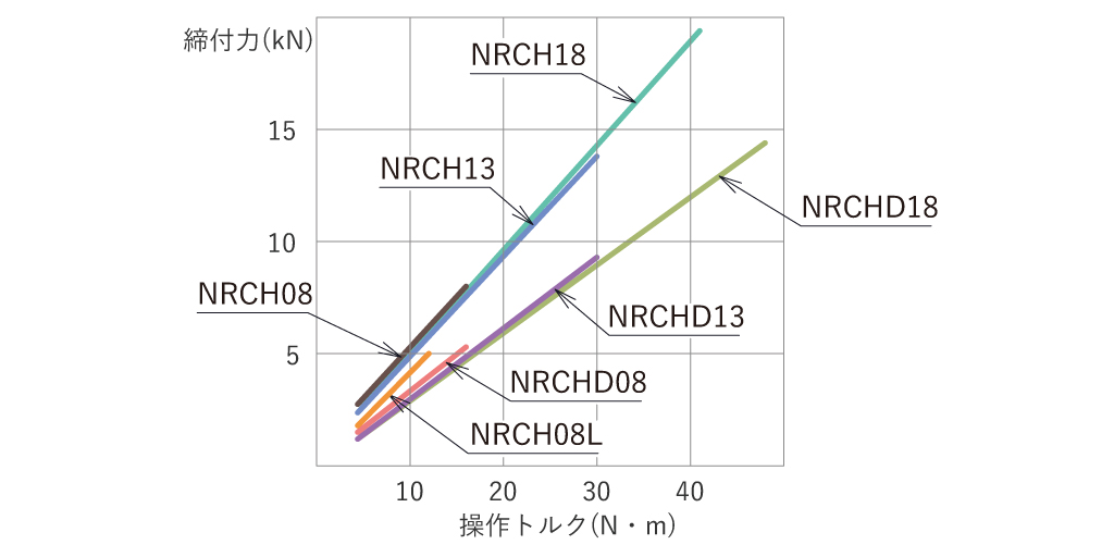 締付力に応じてクランプ力は変動します。対象ワークの材質やワーク加工時の切削抵抗に合わせてお選びください。