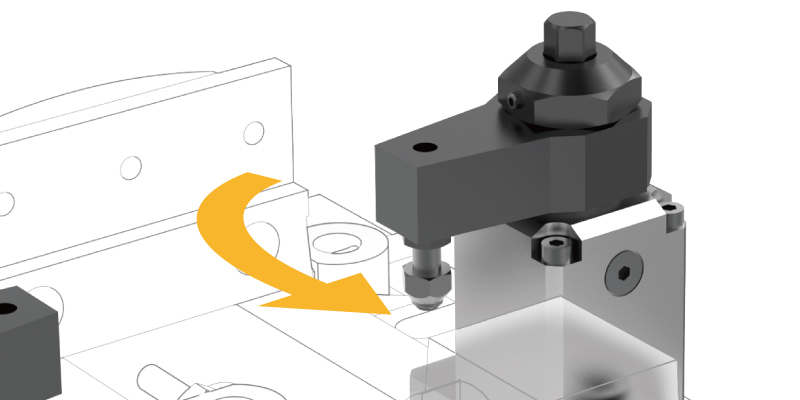 クランプ本体をネジで取り付けるため、故障や摩耗によるユニットの交換が容易。