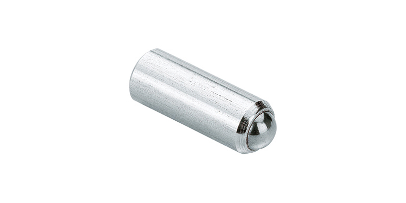 水平方向にスライドするボールプランジャとは異なり、ストロークが大きく、相手部品の穴や溝にピンが確実に入り込む構造。