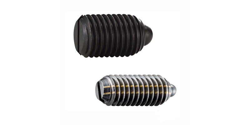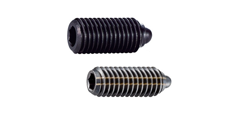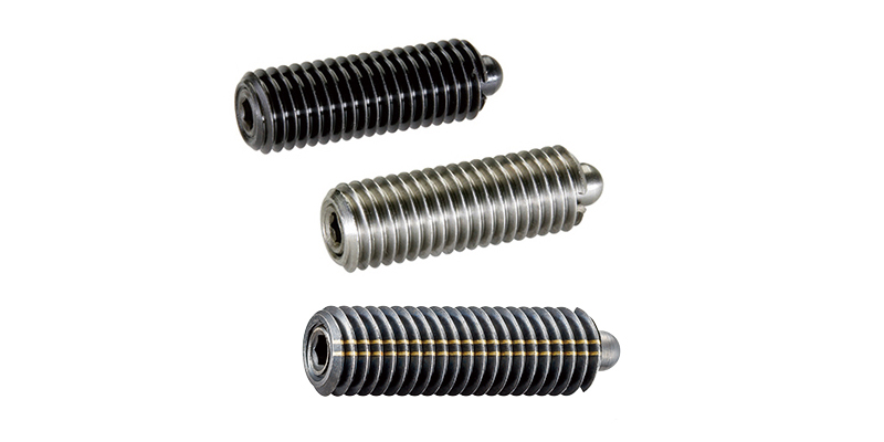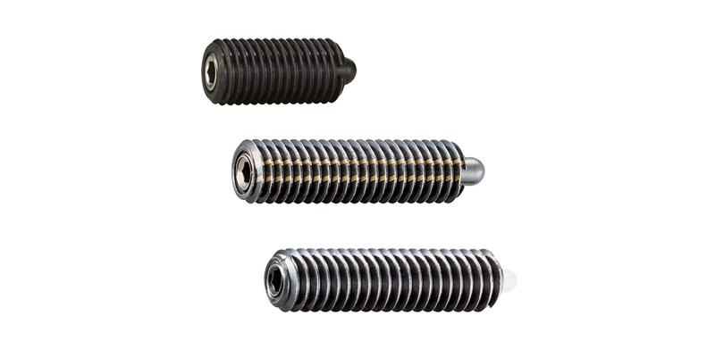 ボールプランジャと異なりストロークが大きく、相手部品の穴や溝にピンが確実に入り込む構造のため、位置決め後に保持する機構に多く用いられます。