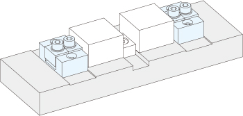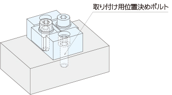 加工穴にマイクロダウンサイドクランプを取り付け用位置決めボルト(付属品、型式:MS50)を用いて取り付けます。