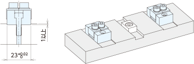 ・マイクロダウンサイドクランプを4kN以上のクランプ力でご使用される場合は、下図の様にベース側に溝を設け、背面を当ててご使用ください。(溝深さ1mm以上)
