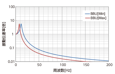 ばねと防振材を使用したハイブリッド構造のため、低い周波数から効率よく低減し、軽量の装置での使用でも高い減衰効果が得られます
