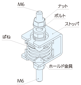 この際、ベースが傾いているとストッパが接触し防振効果が得られなくなるためご注意ください。