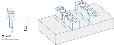 ・マイクロダウンサイドクランプを4kN以上のクランプ力でご使用される場合は、下図の様にベース側に溝を設け、背面を当ててご使用ください。(溝深さ1mm以上)