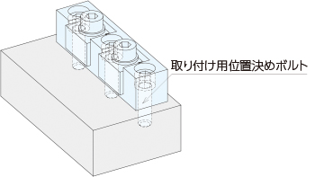 加工穴にマイクロダウンサイドクランプを取り付け用位置決めボルト(付属品、型式:MS50)を用いて取り付けます。