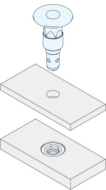 ボタンを押しながら「ホールファスナー ブッシュ(別売り)」へ抜き差しすることでクランプ/ アンクランプを行います。