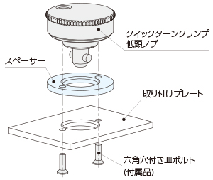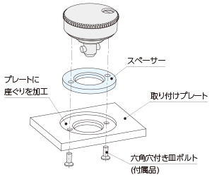 取り付けプレートの厚みが3mm以上6mm未満の場合は、スペーサー(別売)を組み合わせて使用します。