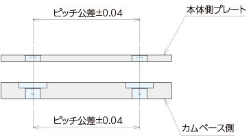 本体側プレートとカムベース側のピッチ公差は±0.04mm以内の精度で加工してください。
