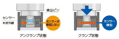 本製品は以下の図のような構造により赤外線光を検出しクランプ/アンクランプの状態を把握します。