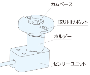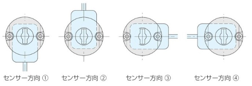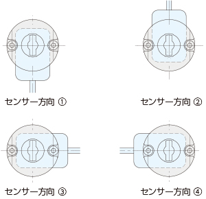 センサーユニットはカムベースに設けてある取り付け穴への取り付け位置に合わせて以下の4方向での取付が可能です。