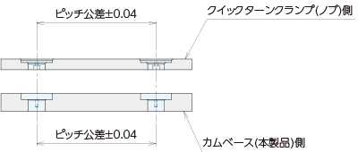 クイックターンクランプ(ノブ)側とカムベース(本製品)側のピッチ交差は±0.04mm以内の精度で加工してください。