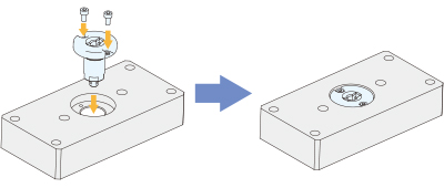 ①プレートに本製品の本体を六角穴付ボルト(付属品)で取り付けます。