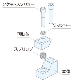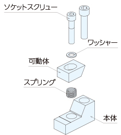 可動体のソケットスクリューを締め付けることで、クランプします。