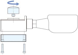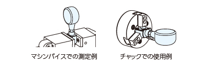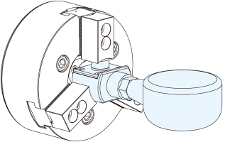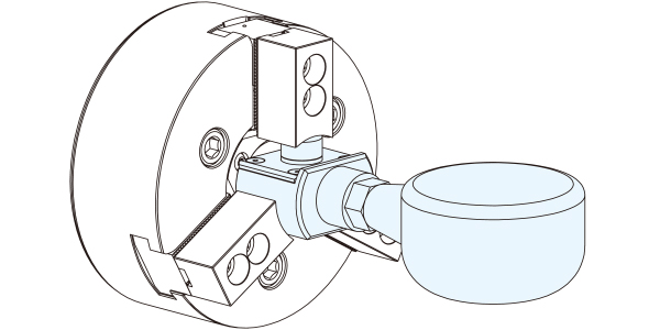 三つ爪チャックでの測定時はセンサー部にチャックの爪一つが当たるように取り付けます。