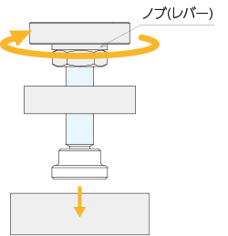 取り付けたノブ(レバー)を回し、グラブスクリューをワークに当ててください。