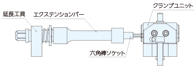 クランプユニットとの連結には、六角棒ソケット・エクステンションバー(お客様ご用意)をご使用ください。
