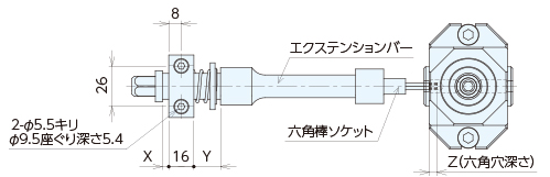 ※使用に必要な六角棒ソケットとエクステンションバーはお客様にてご用意ください。