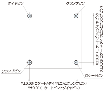 ・ロケートピン/ダイヤピンとクランプピン:±0.03