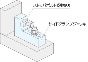 サイドクランプジャッキにストッパボルト等を取り付け、ボルトを回してワークに当ててください。