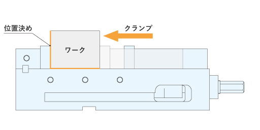 | 固定アゴ・口金 | 奥行方向のワーク位置決め |