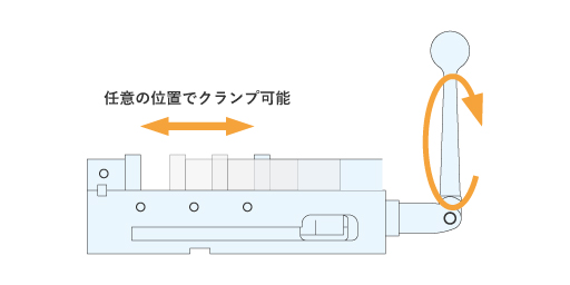 複数の位置決め部品の調整、クランプユニットの締め緩めが不要です。